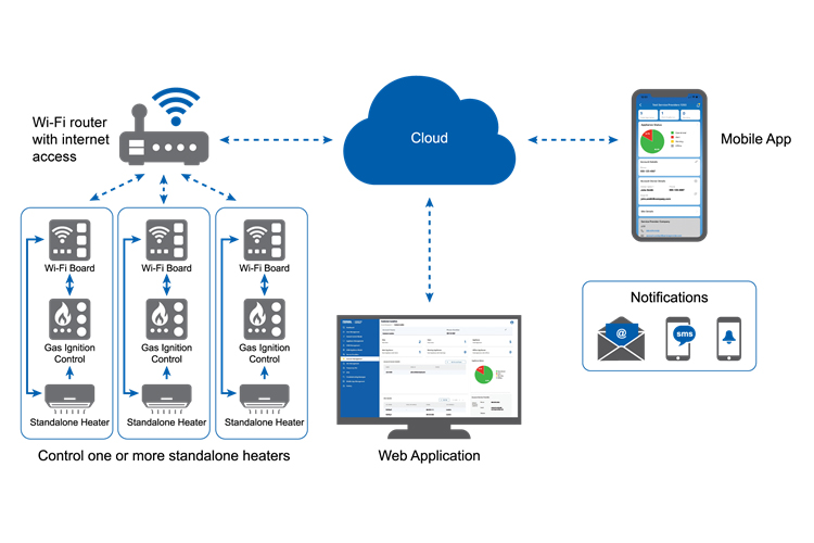 A wireless system for use with gas ignition controls within many types of appliances. It regularly uploads data to the cloud and quickly sends an alert in the event of a failure. Designed to provide data to end users, service providers, and the OEM.